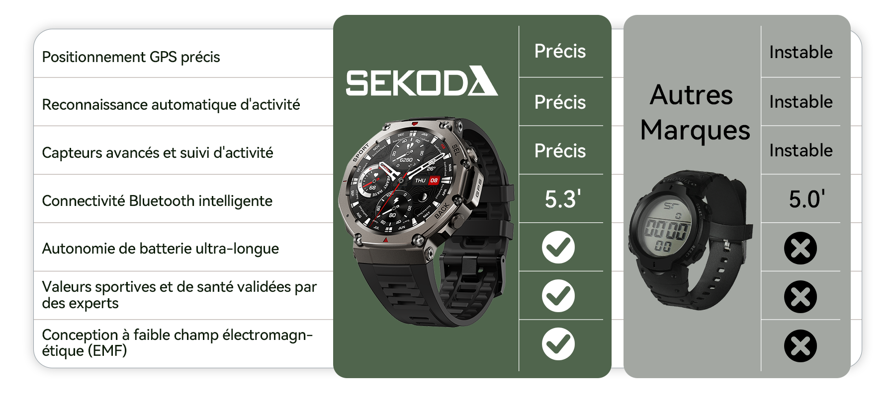 Montre connectée GPS Sekoda Sports : surveillez votre santé 24 h/24, 7 j/7, maîtrisez vos performances sportives, optimisez votre quotidien et portez le parfait mélange entre mode et technologie.