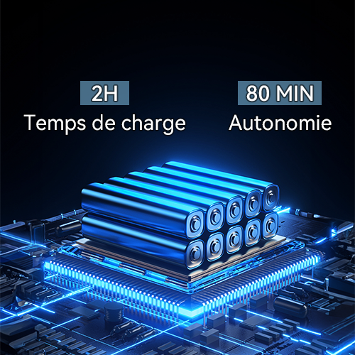 - Long - Lasting Lithium Battery - Charge rapide, pas d'effet de mémoire et puissance prolongée.
