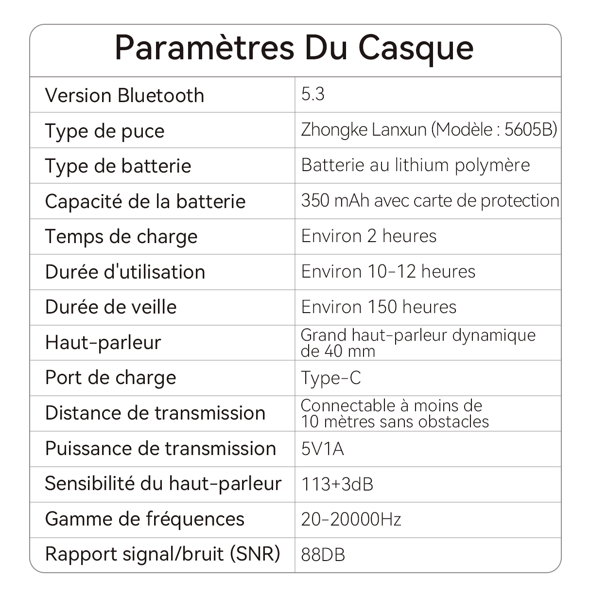 - Batterie longue durée – Bénéficiez d'une autonomie étendue et de recharges rapides pour une écoute infinie.