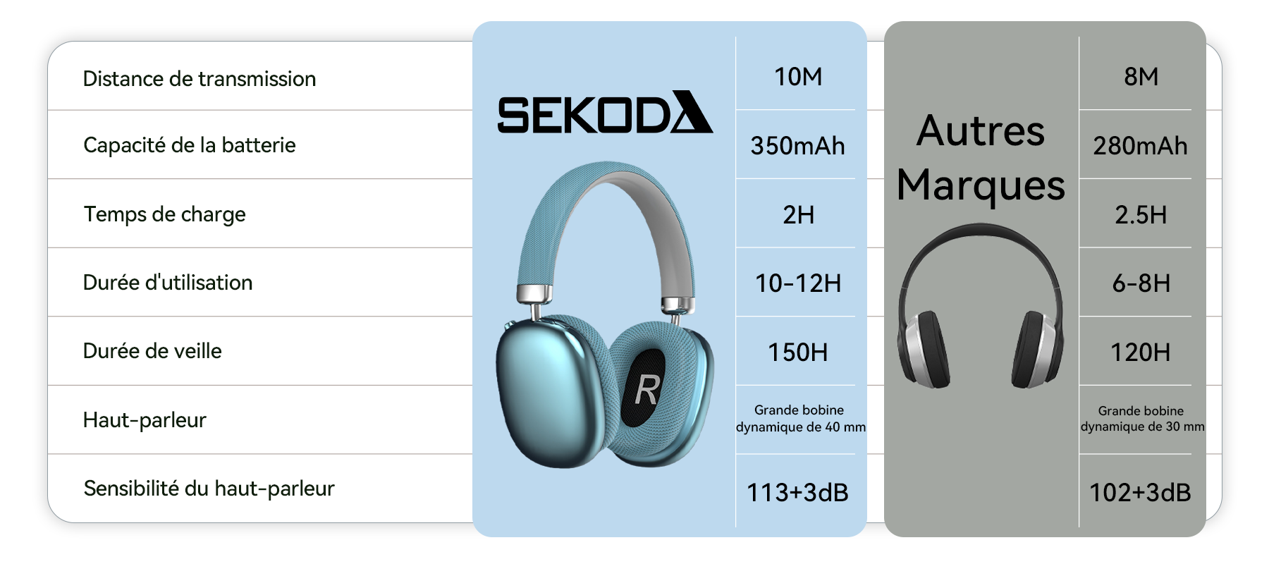 Fatigué des casques qui pincent et serrent vos oreilles jusqu'à ce qu'elles fassent mal ? Redoutez-vous de retirer votre casque pour être accueilli par des lobes d'oreilles lancinants ? Les casques Sekoda sont méticuleusement conçus avec un design ergonomique avancé, répondant spécifiquement aux points de douleur liés à une utilisation prolongée, afin que vous puissiez profiter de votre audio pendant des heures sans douleur.